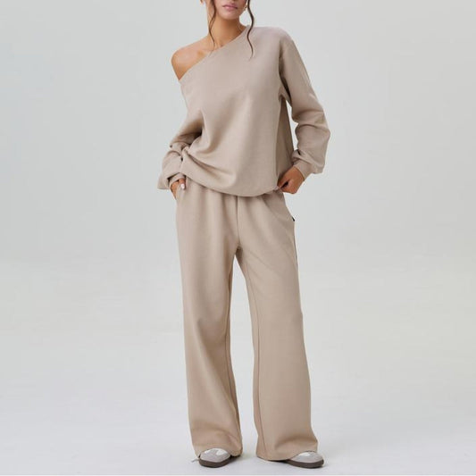 Oversized Off-Shoulder Sweatshirt And Relaxed Fit Wide-Leg Pants Set for Women – Cozy Casual Comfort