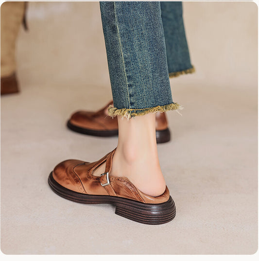 Chunky Sole Brogue Ankle-Strap Mary Jane T-Strap Shoes for Women – Orthopedic Comfort & Support