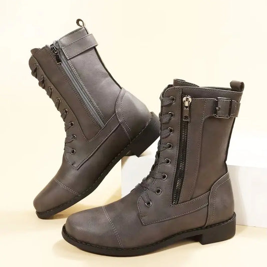 Retro Leather Boots for Women – Chic & Stylish with Belt Buckle Detail