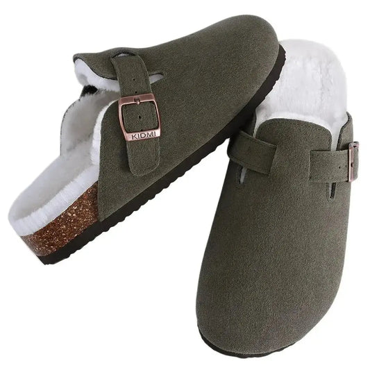 Fur-Lined Suede Clogs for Women – Cozy & Adjustable Comfort