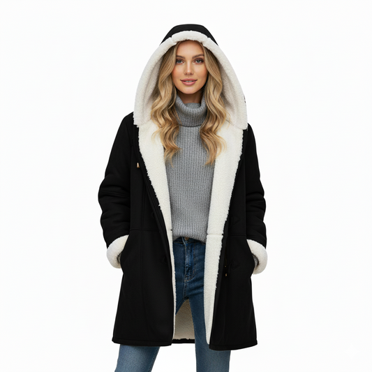 Comfort Hooded Coat for Women – Warm Mid-Length Toggle Jacket