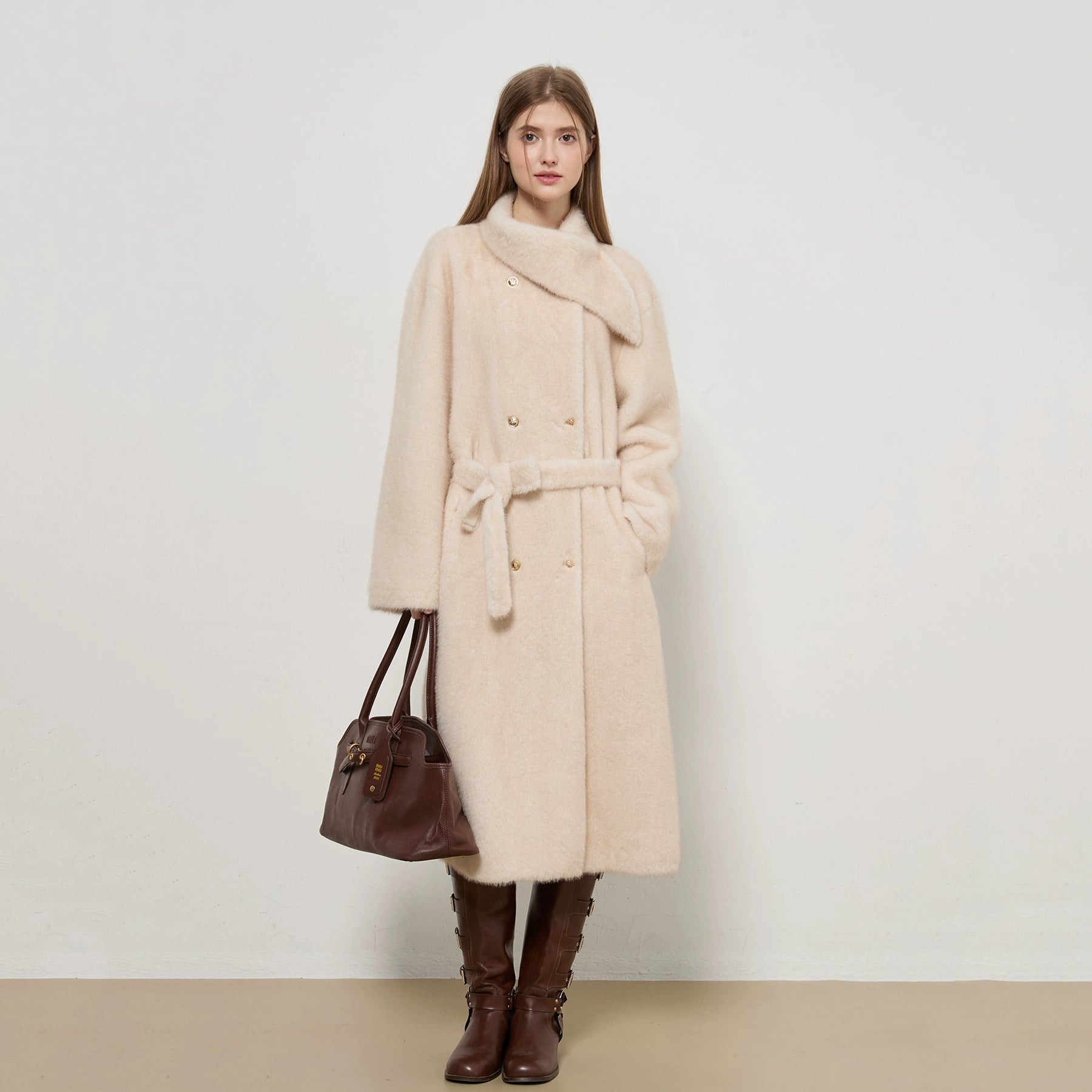 Discover the Charm of the Longline Wrap Coat for Women – Soft Faux-Fur Finish – Belted Silhouette